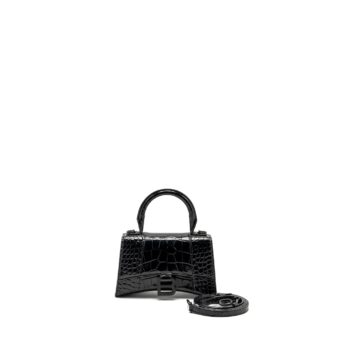 Balenciaga XS Hourglass Croc-embossed Calfskin So Black