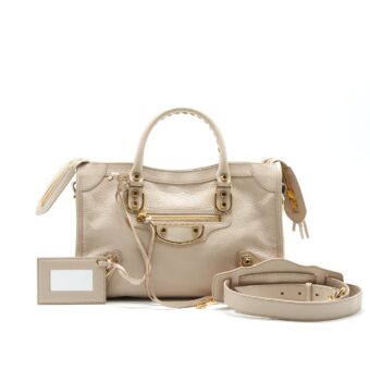 BALENCIAGA SMALL METALLIC EDGE CITY BEIGE GHW