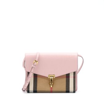 Burberry Small Leather And House Check Crossbody Bag Pale Orchid
