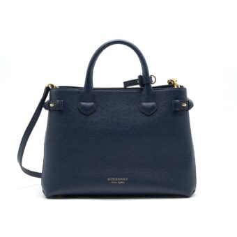 Burberry Leather/ Canvas Tote Bag Navy GHW