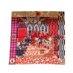 Hermes 90*90cm Silk Scarf La Danse Des Amazones Po/Rouge/Fuchsia/ Mari