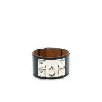 Hermes Size T3 Collier De Chien Bracelet Calfskin Black SHW