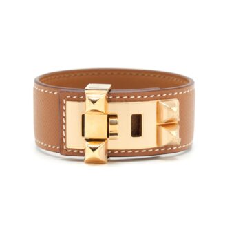 Hermes Size T3 Collier De Chien 24 Bracelet Epsom Gold RGHW