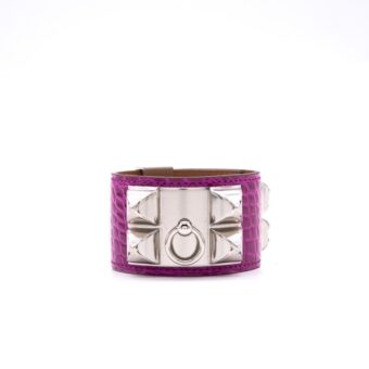 HERMÈS CLIC H PINK ENAMEL GOLD PLATED NARROW BRACELET PM