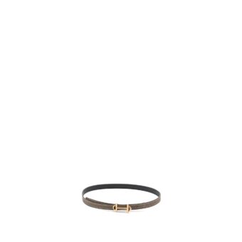 • Hermes size 95cm 24mm double sided belt etoupe / black with Gold detailed H buckle Stamp B