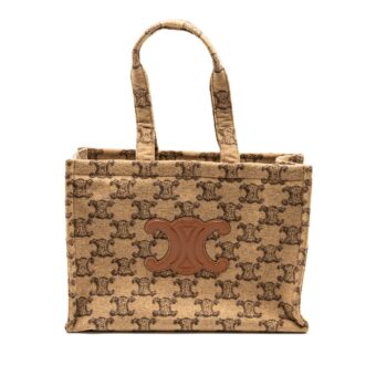 Celine Large Cabas Thais Triomphe Printed Wool/Calfskin Wool/Calfskin Brown