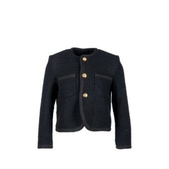 Celine Size 40 Tweed Button Jacket Wool/Polyamide Black/grey
