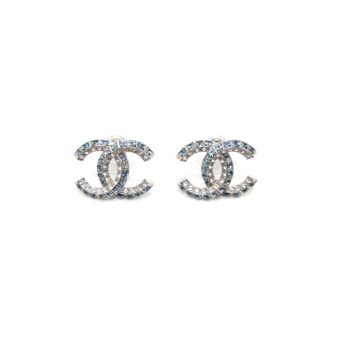 Chanel CC Crystal Stud Earrings in Blue and White Crystals