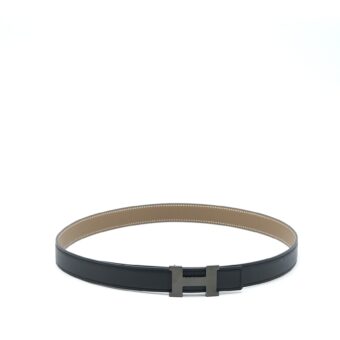 Hermes Size 80 Seul De Ceinture Belt Swift/Epsom Black/Etoupe with Mini Constance Buckle GHW Stamp U