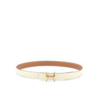 Hermes Size 85 Mors H Belt Buckle&Reversible Leather Strap 24MM Nata/Gold GHW Stamp Z