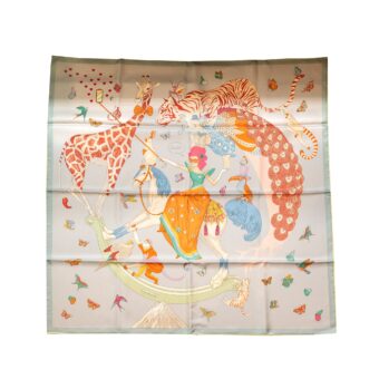 HERMES 90*90cm Silk Forever Scarf Grand Apparat Crème / Gold / Multicolore
