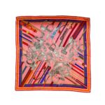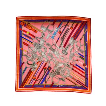 Hermes 140cm cashmere / silk shawl scarf concours d’etriers multicolour pink