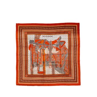 • Hermes 140cm Soie Selle De Scarf Cashmere Orange/Roux/Naturel