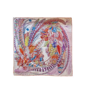 • Hermes 140cm Soie Plumes En Fete Scarf Cashmere Chine/mauve/rose