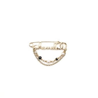 Chanel Letter Brooch White Light Gold Tone