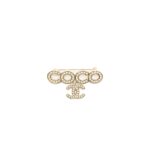 Chanel Coco Logo Brooch Pearl Light Gold Tone