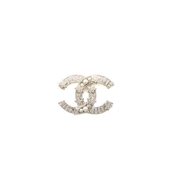 Chanel CC Comet Logo Brooch Crystal/Pearl Silver Tone