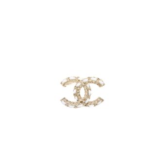Chanel Detailed CC Logo Brooch Crystal Light Gold Tone