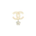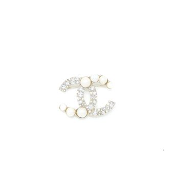 Chanel CC Logo Brooch Crystal/Pearl Light Gold Tone