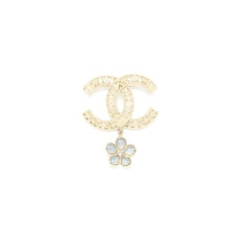 Chanel CC Logo Brooch Camellia Drop Brushed GHW