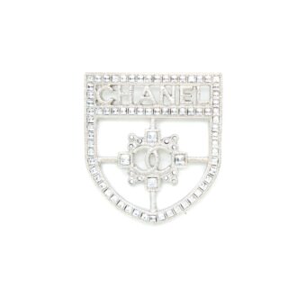 Chanel Shield Brooch Crystal Silver Tone