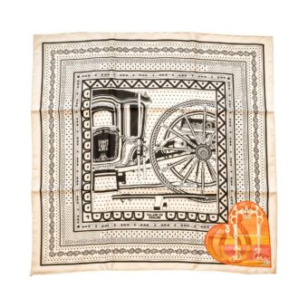 • Hermes 70cm Silk Scarf Balade En Berline Ban Blanc/Black