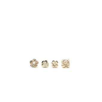 Chanel 4 Pins Brooch Crystal/Pearl Light Gold Tone