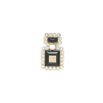 Chanel Perfume Bottle CC Logo Brooch Crystal/Pearl Black Light Gold Tone
