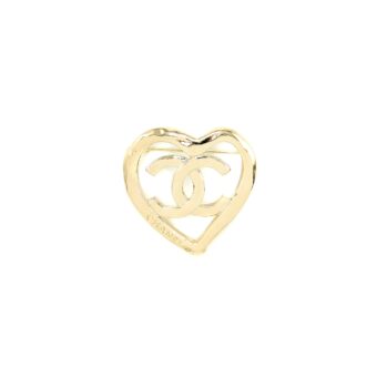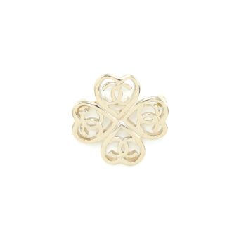 Chanel CC Logo Heart Clover Brooch Light Gold Tone