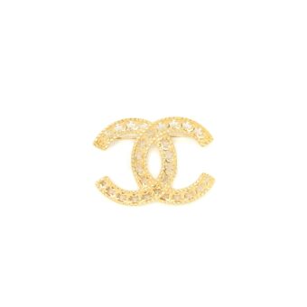 Chanel CC Logo Brooch With Crystal Gold Tone