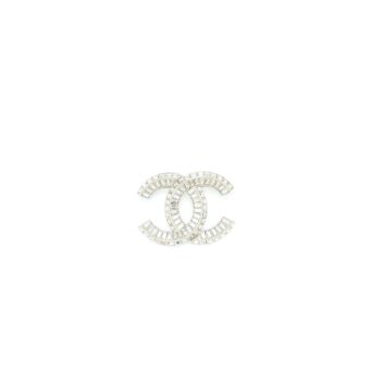 Chanel CC Logo Brooch Metal/Strass Silver Tone
