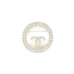 Chanel Round CC Logo Brooch Crystal Light Gold Tone