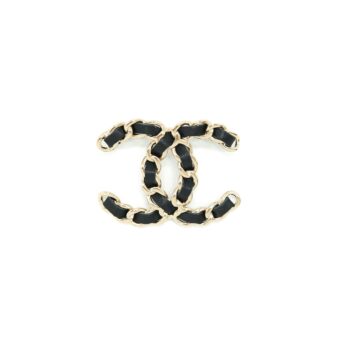 Chanel CC Logo Leather chain Brooch Black LGHW