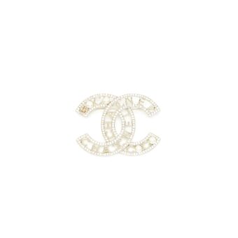 Chanel cc Logo Letter and Pearl Brooch LGHW