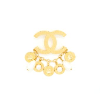 Chanel 20A Seasonal CC Logo Pearls And Button Brooch Gold