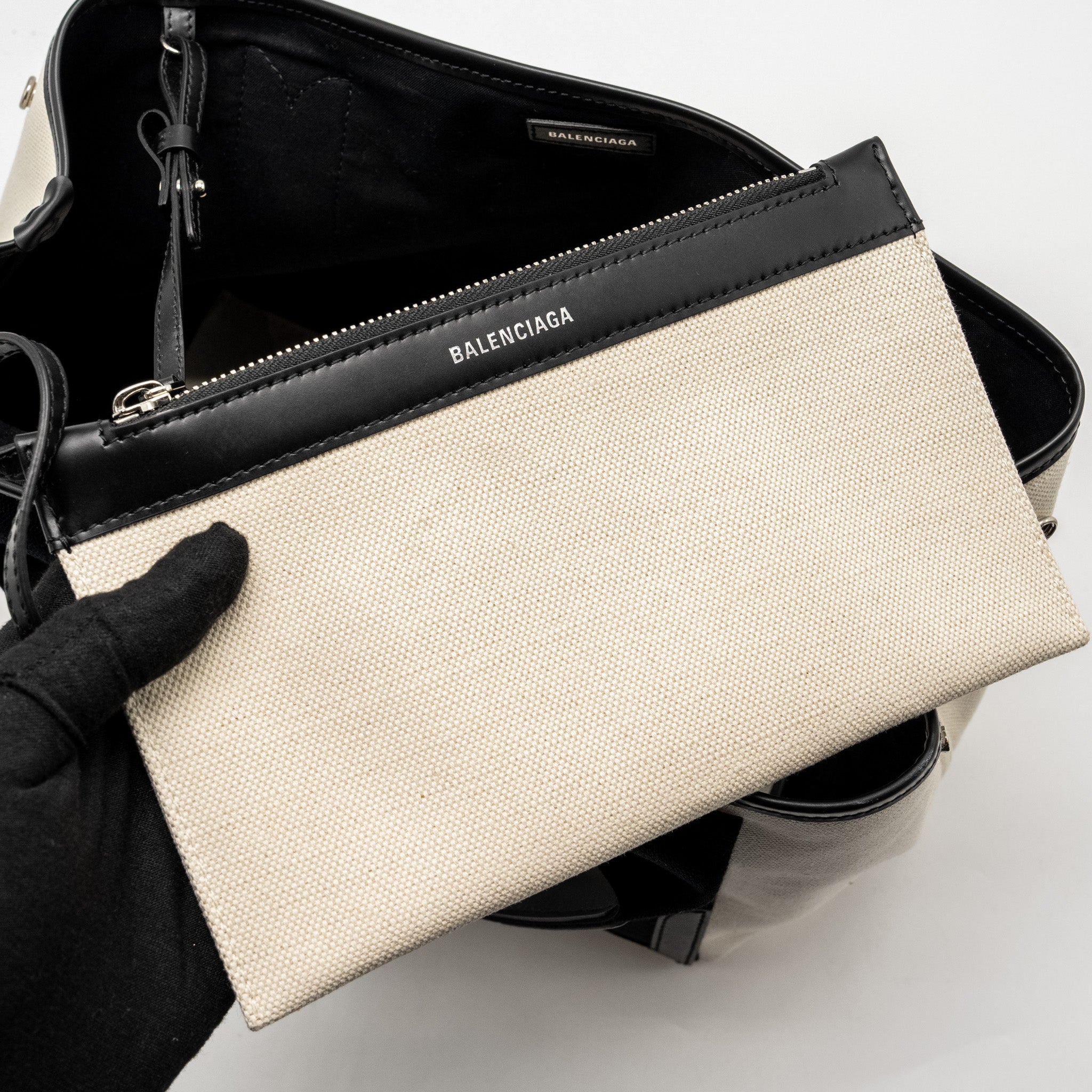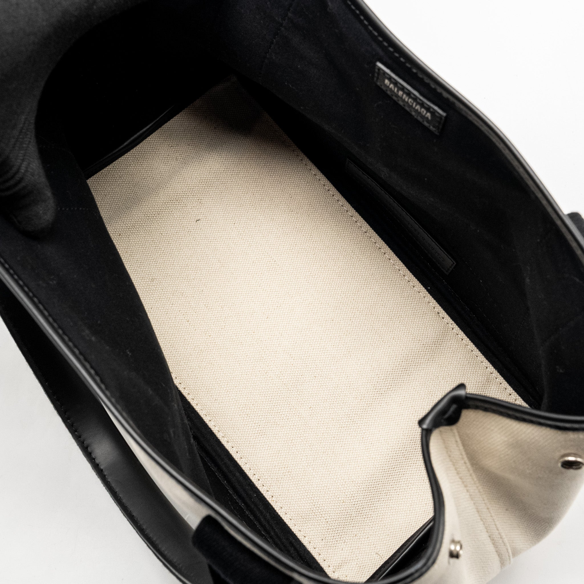 Balenciaga Cabas Tote Bag Canvas/Calfskin Natural/Black SHW