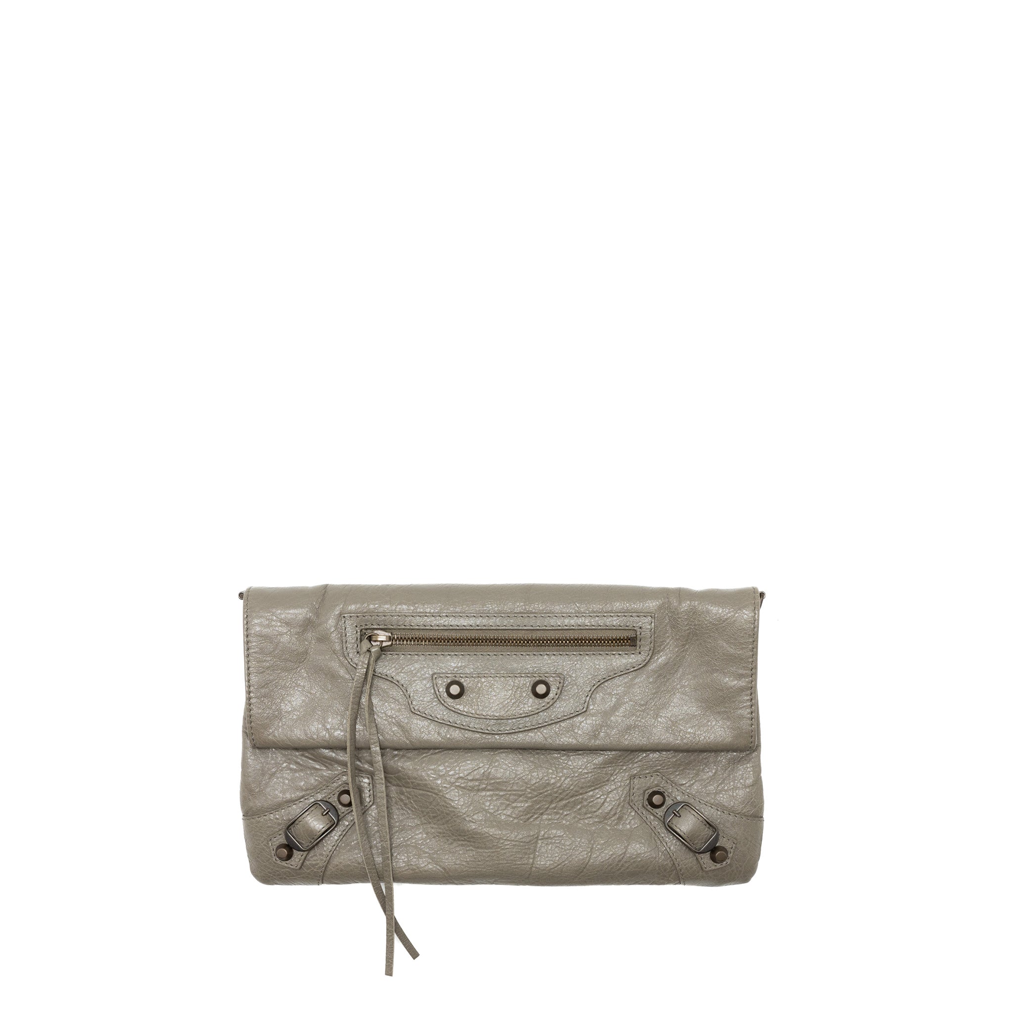 Balenciaga City Fold Clutch/Shoulder Bag Leather Grey Ruthenium Hardware