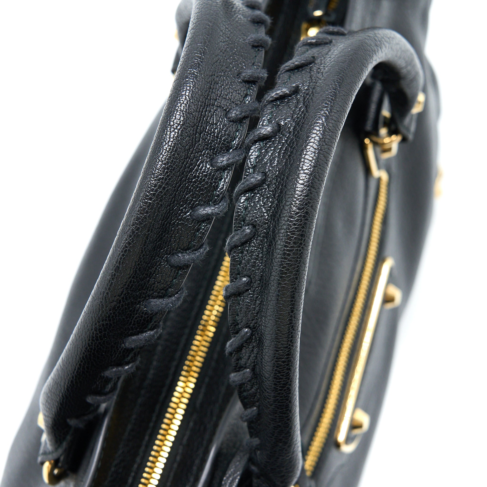 Like New ( This item is in excellent condition with hairline scratches on hardware, one thread-off on bottom edge, slightly softened structure. )