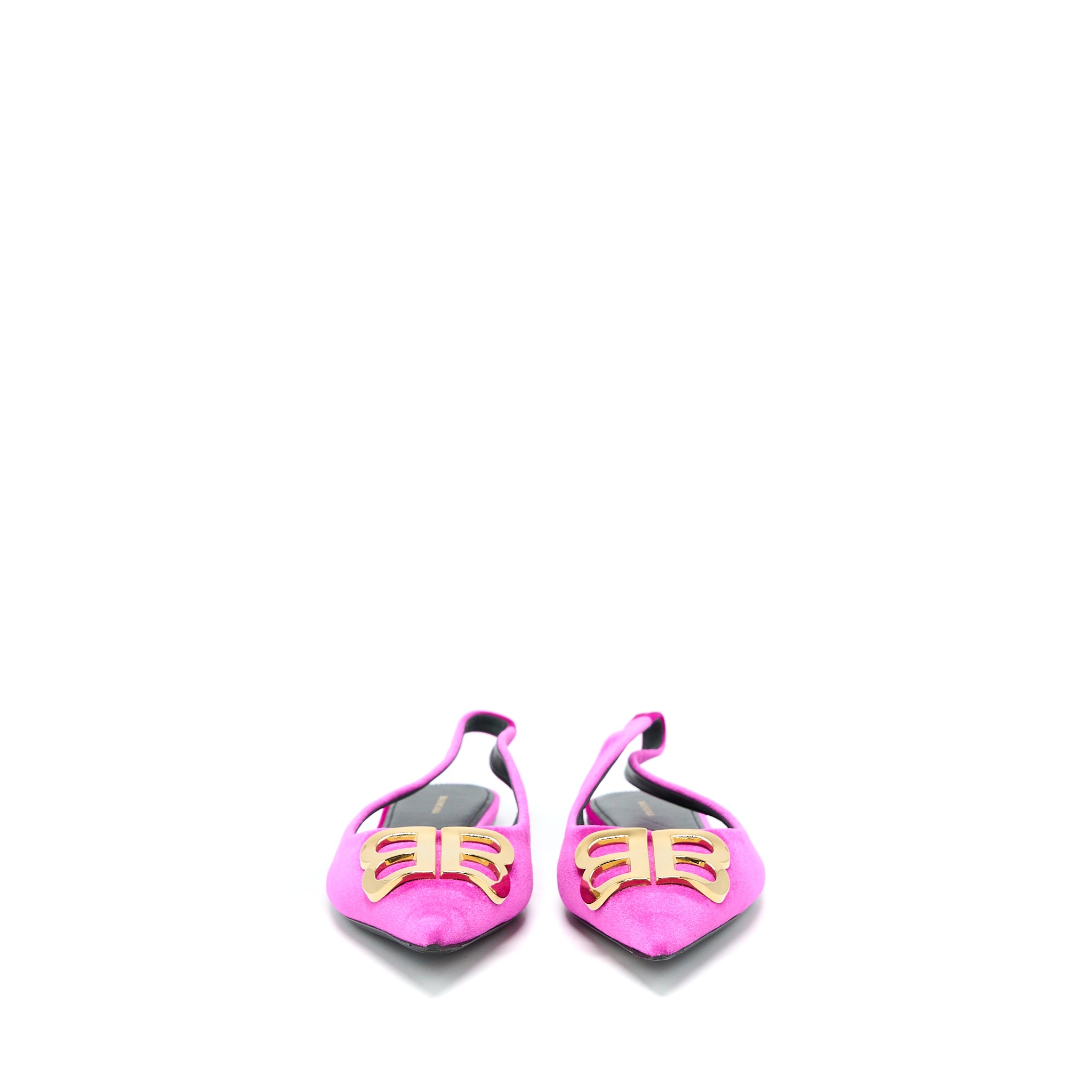 Balenciaga Size 39.5 Ballet Flats BB Velvet Pink Gold Tone