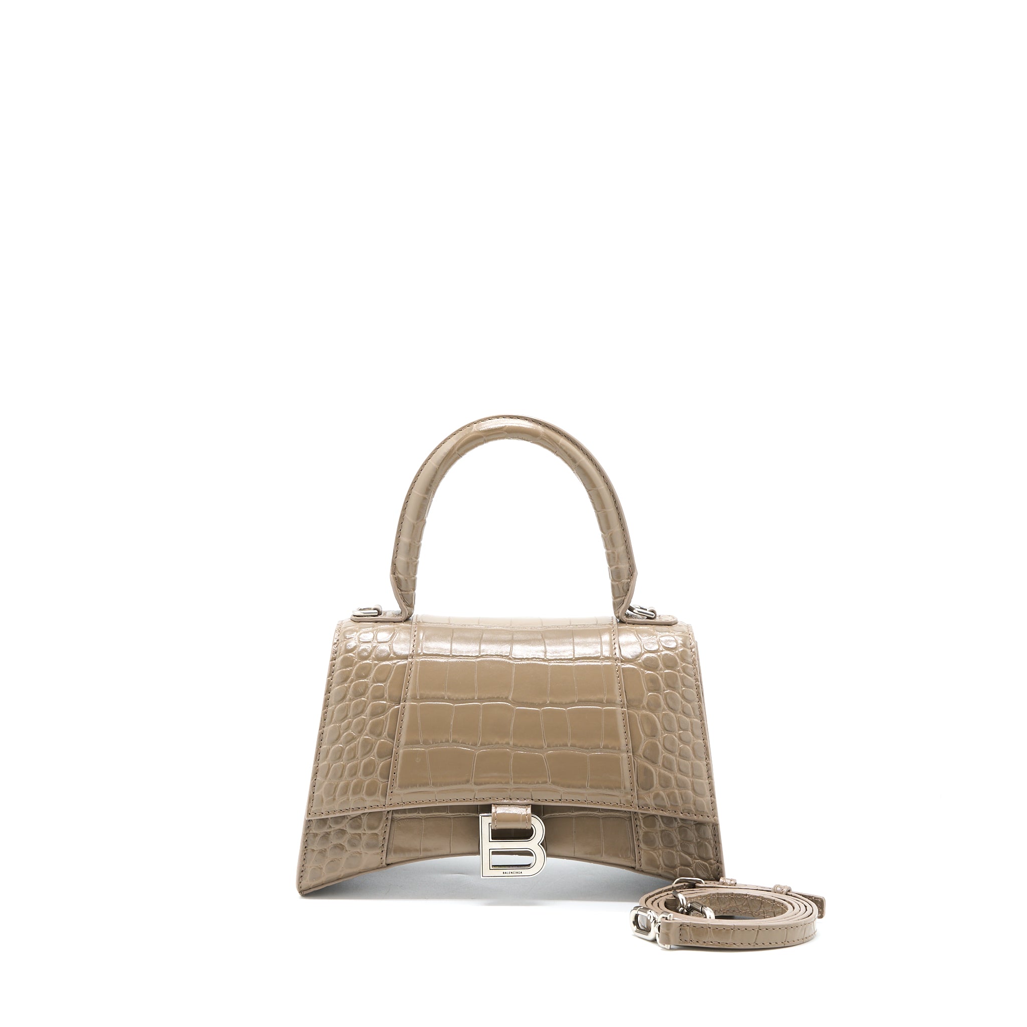 Balenciaga Small Hourglass Bag Cro Embossed Calfskin Dark Beige SHW