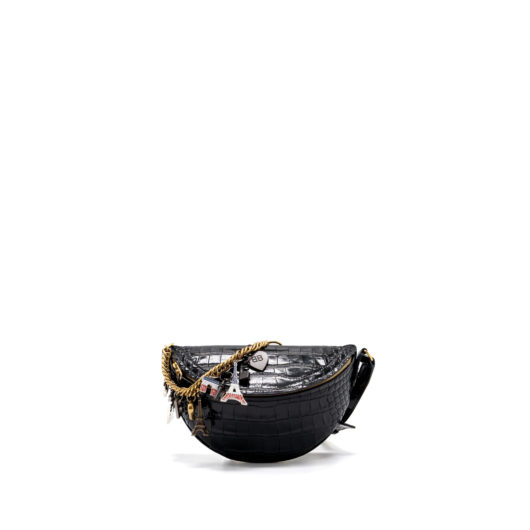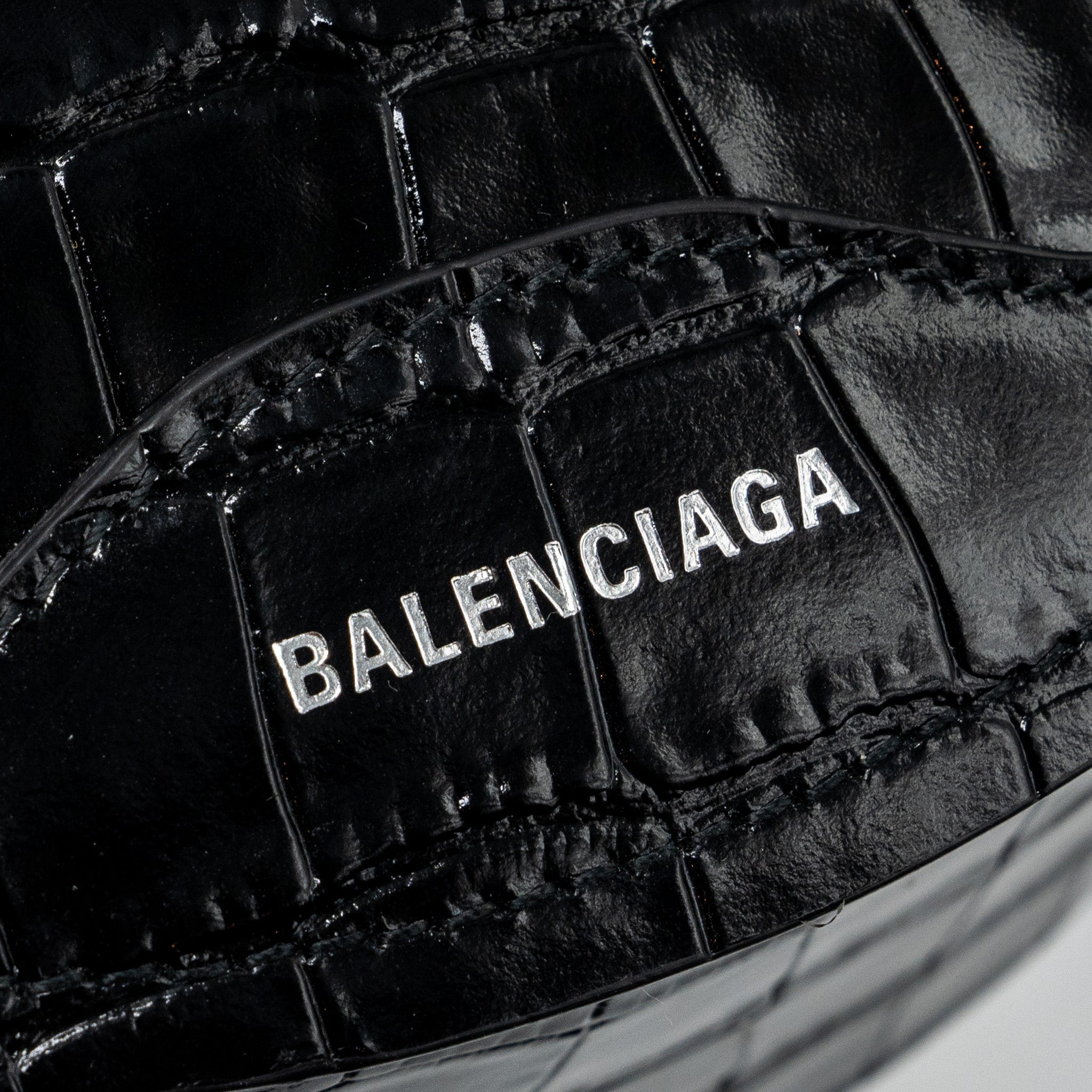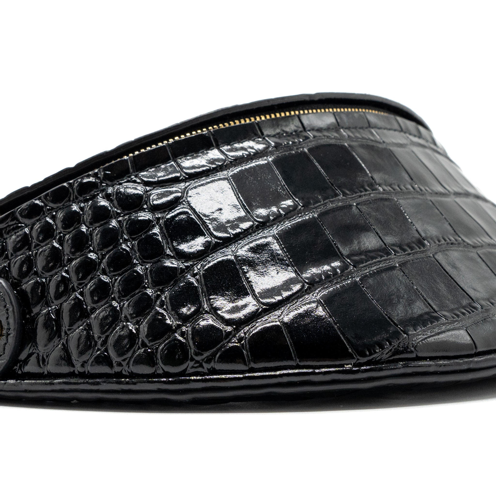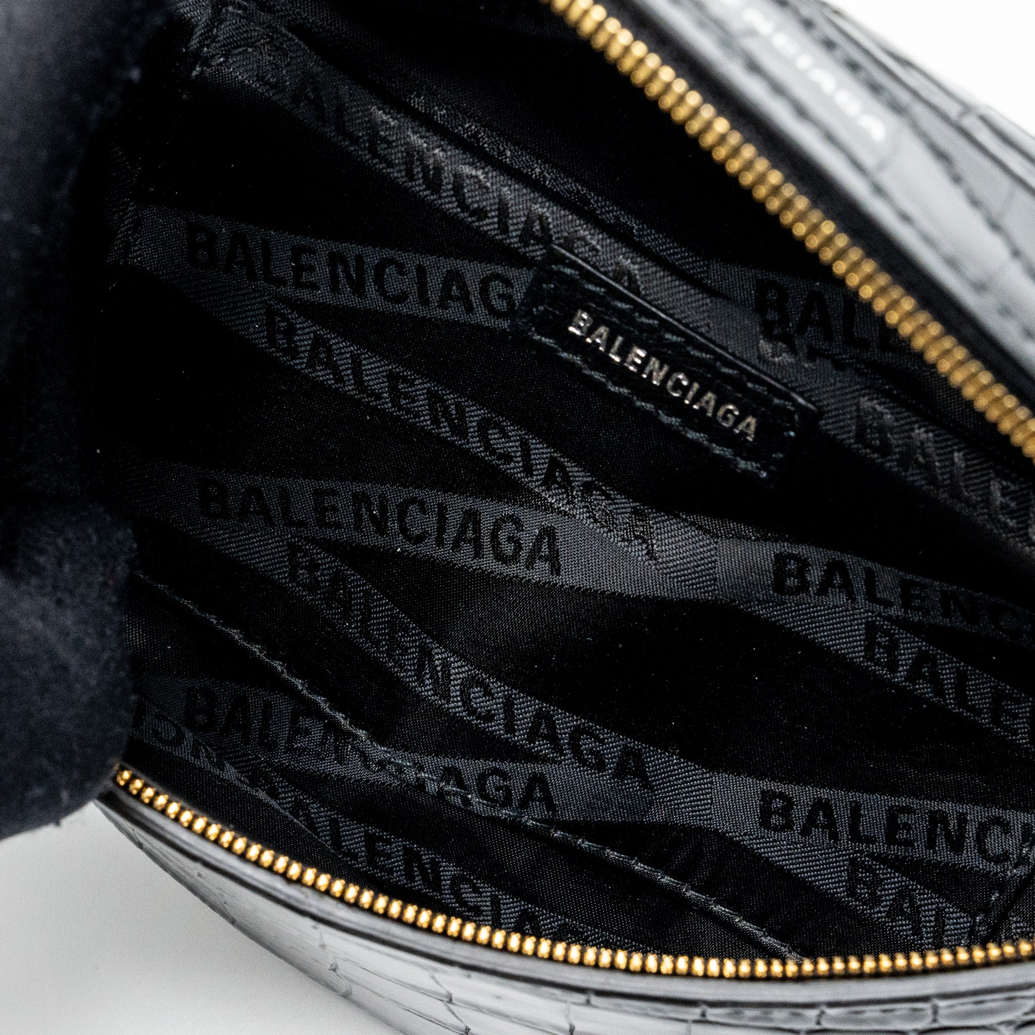 BALENCIAGA SOUVENIR BELT BAG Croc-Embossed Calfskin Black GHW