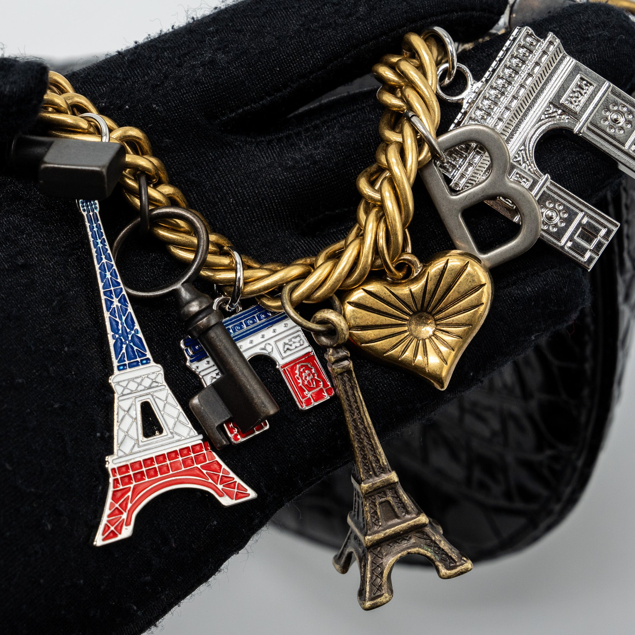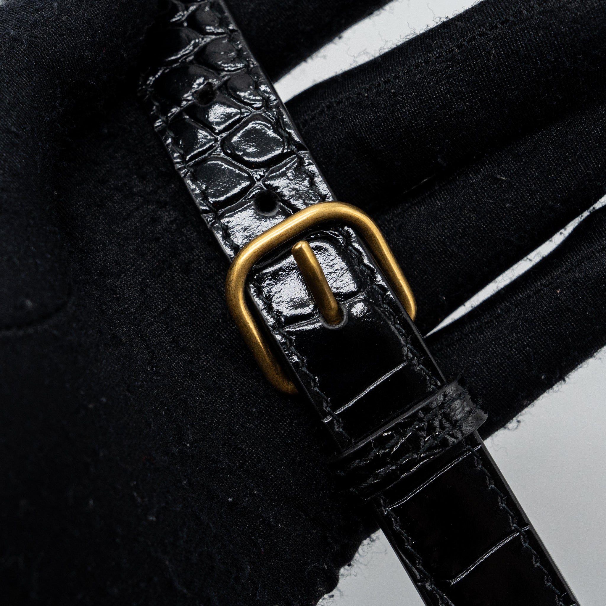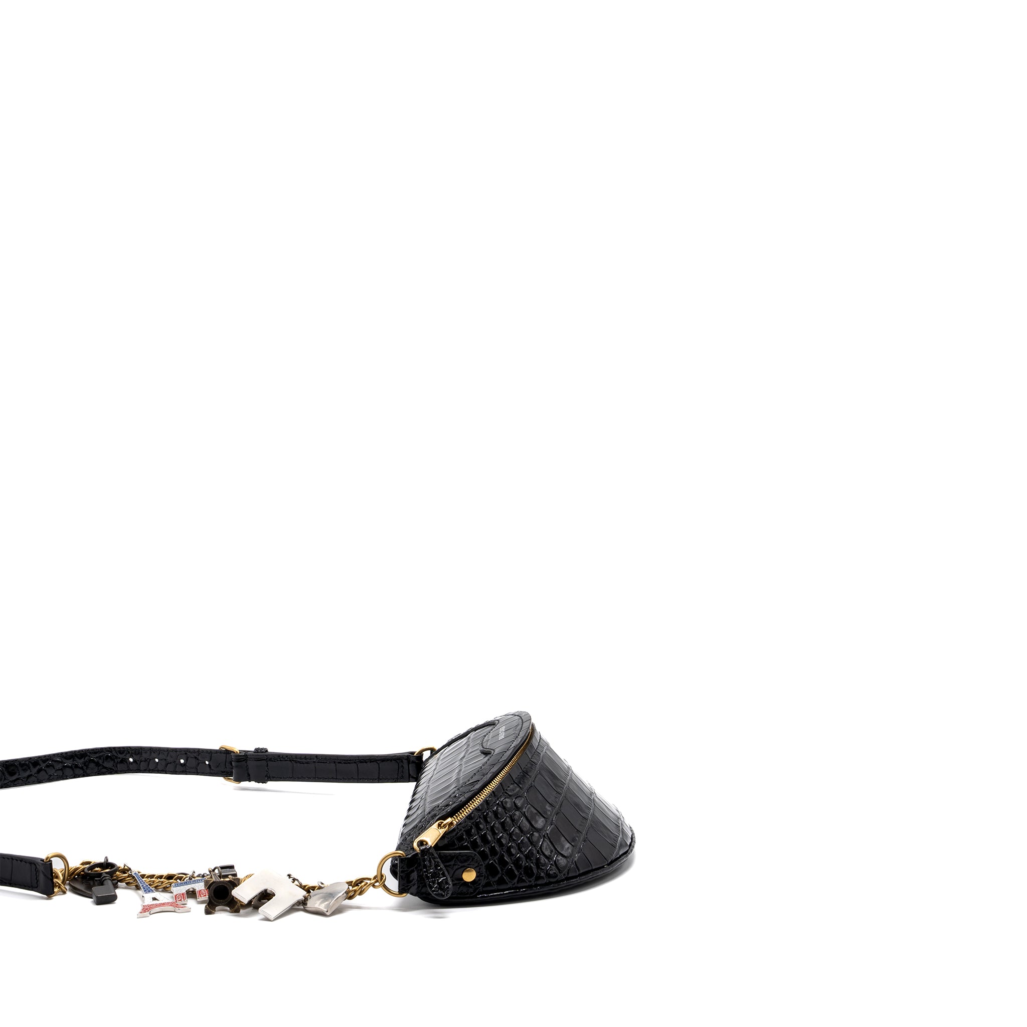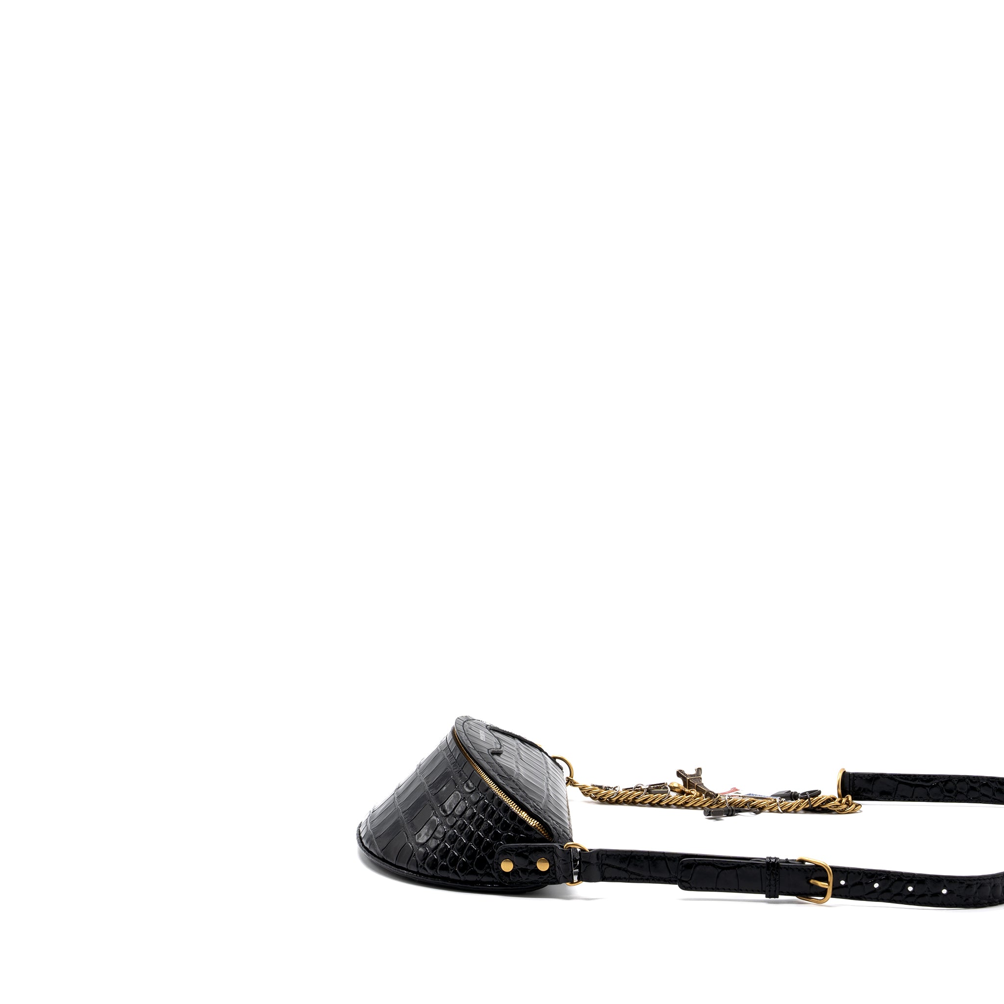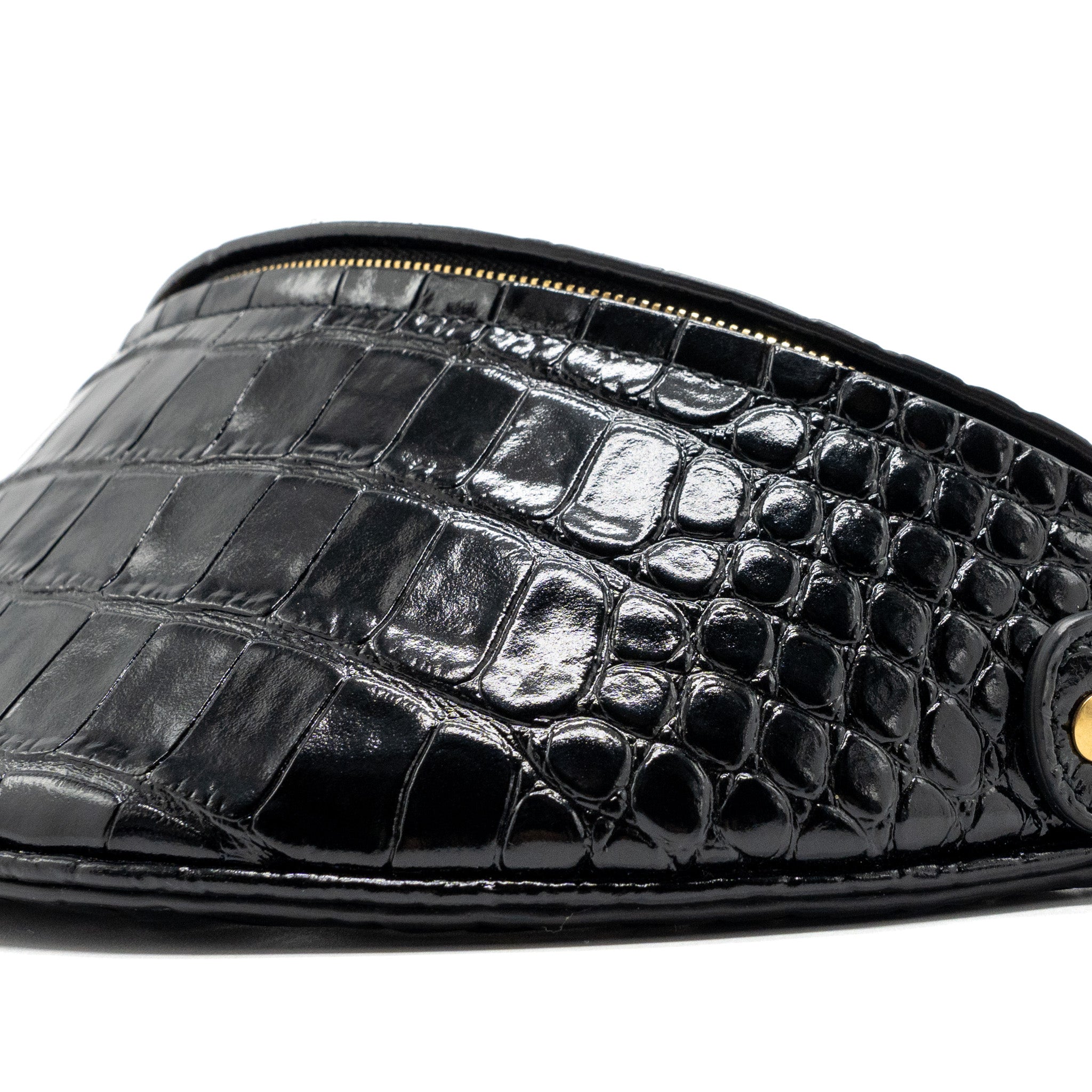 BALENCIAGA SOUVENIR BELT BAG Croc-Embossed Calfskin Black GHW