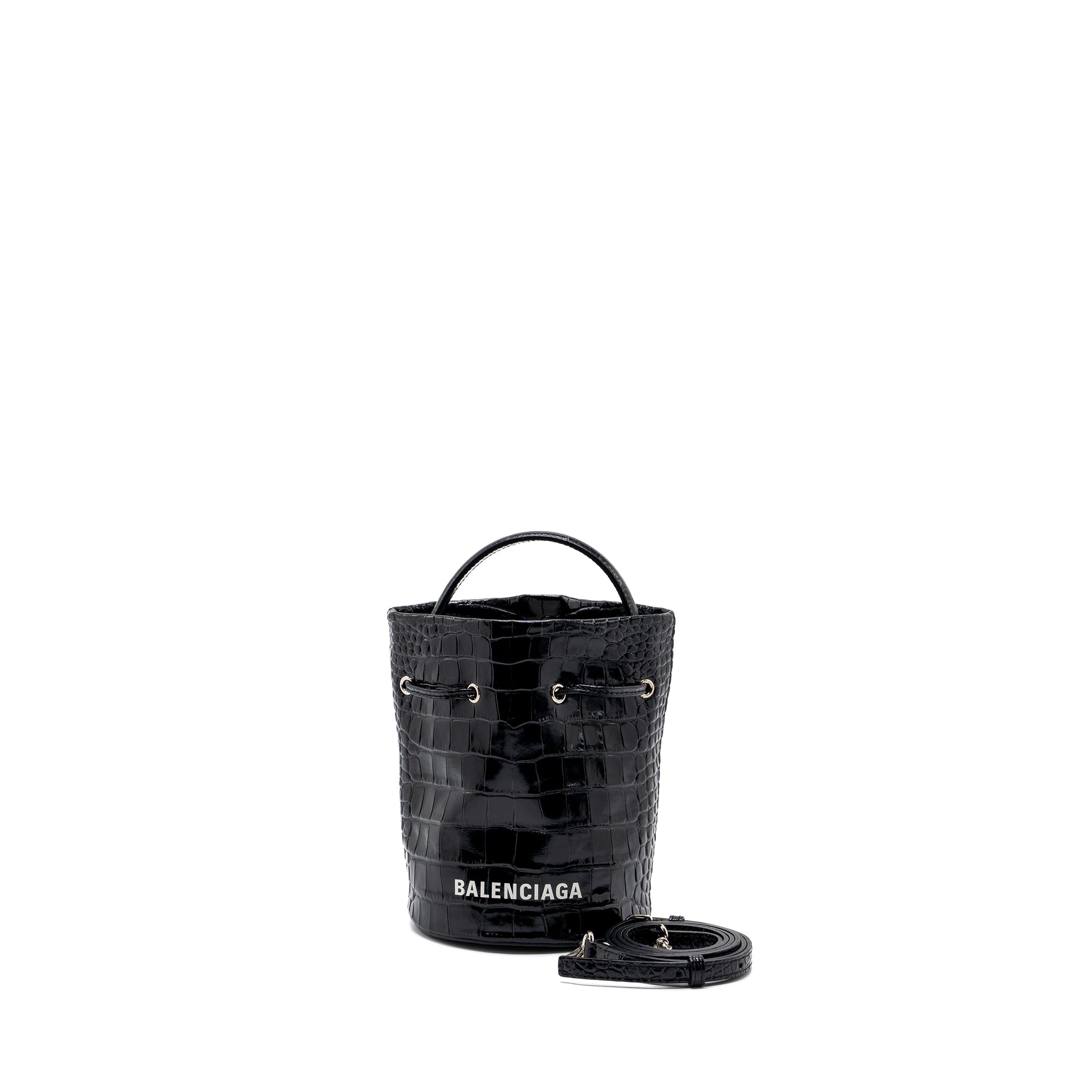 BALENCIAGA XS Everyday Drawstring Bucket Bag Black SHW