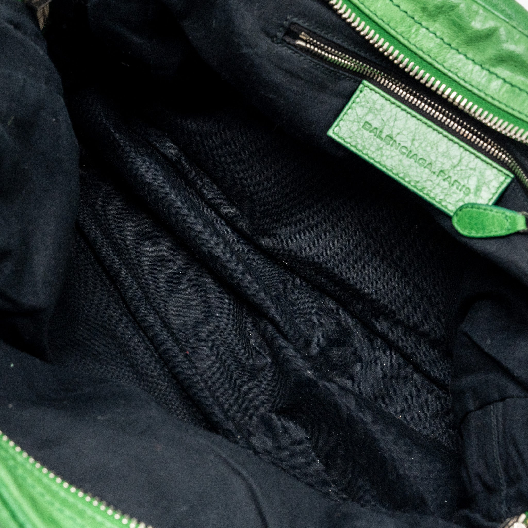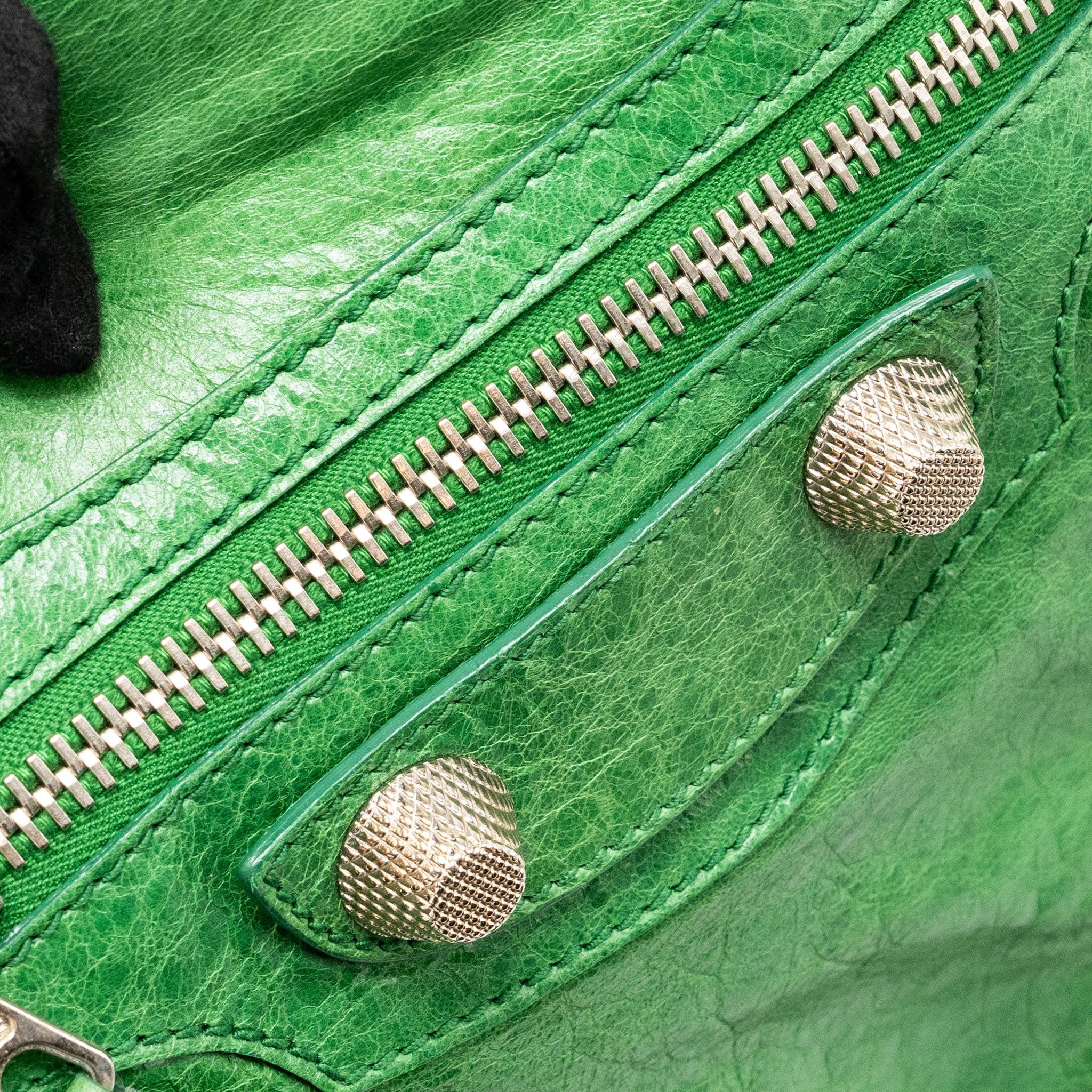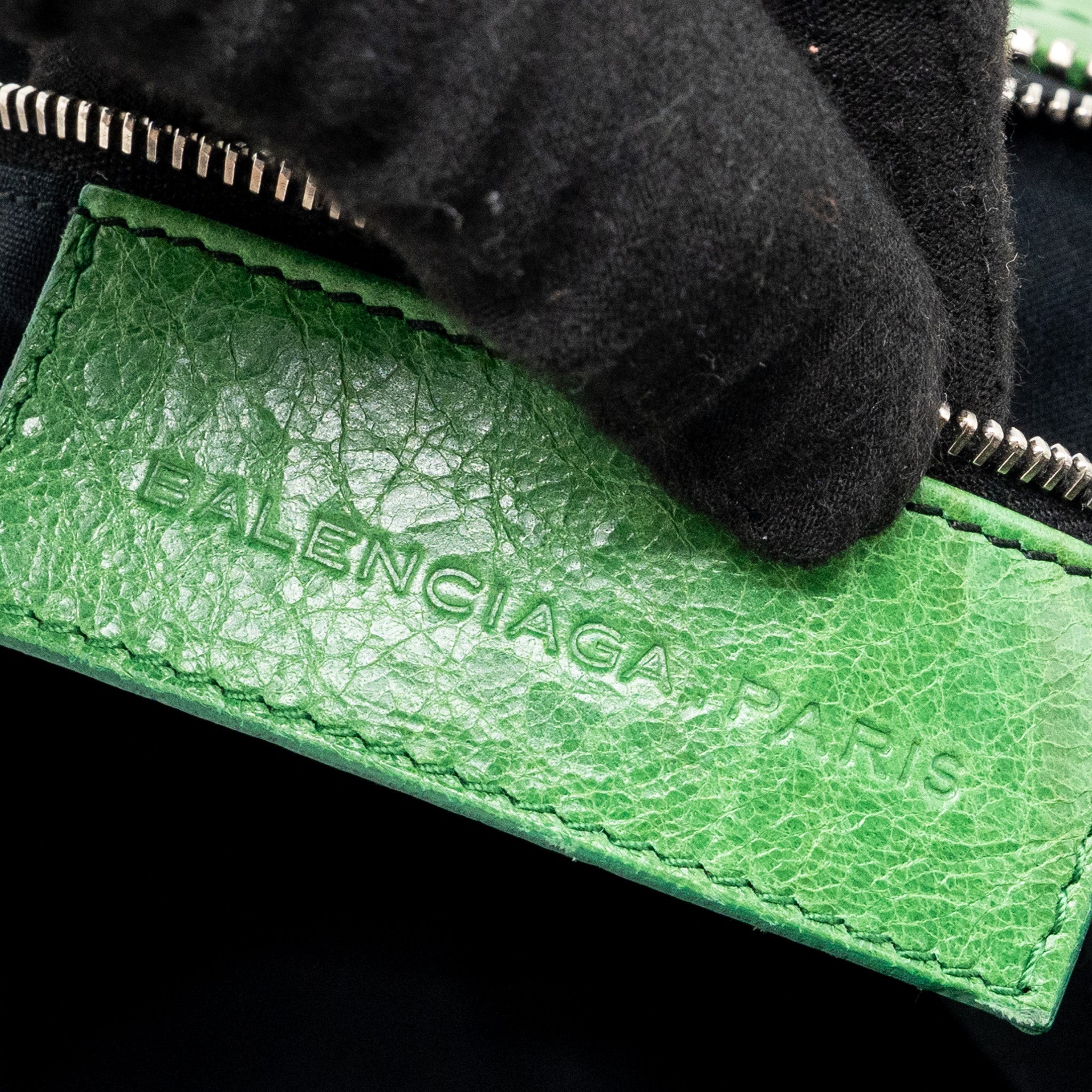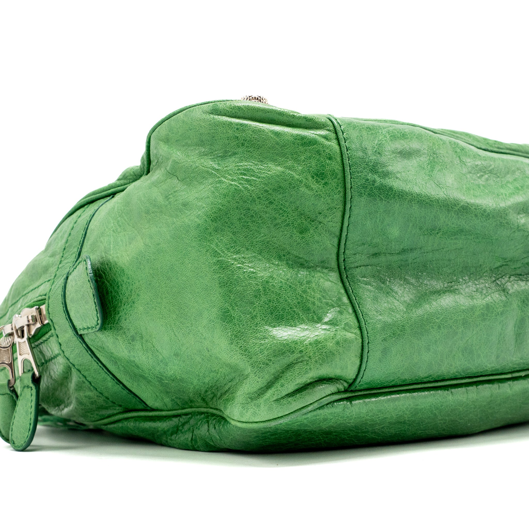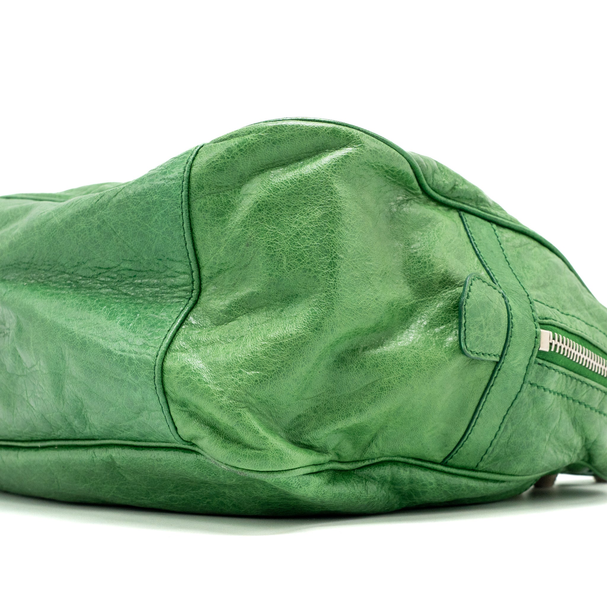 Balenciaga zip handle bag green leather SHW