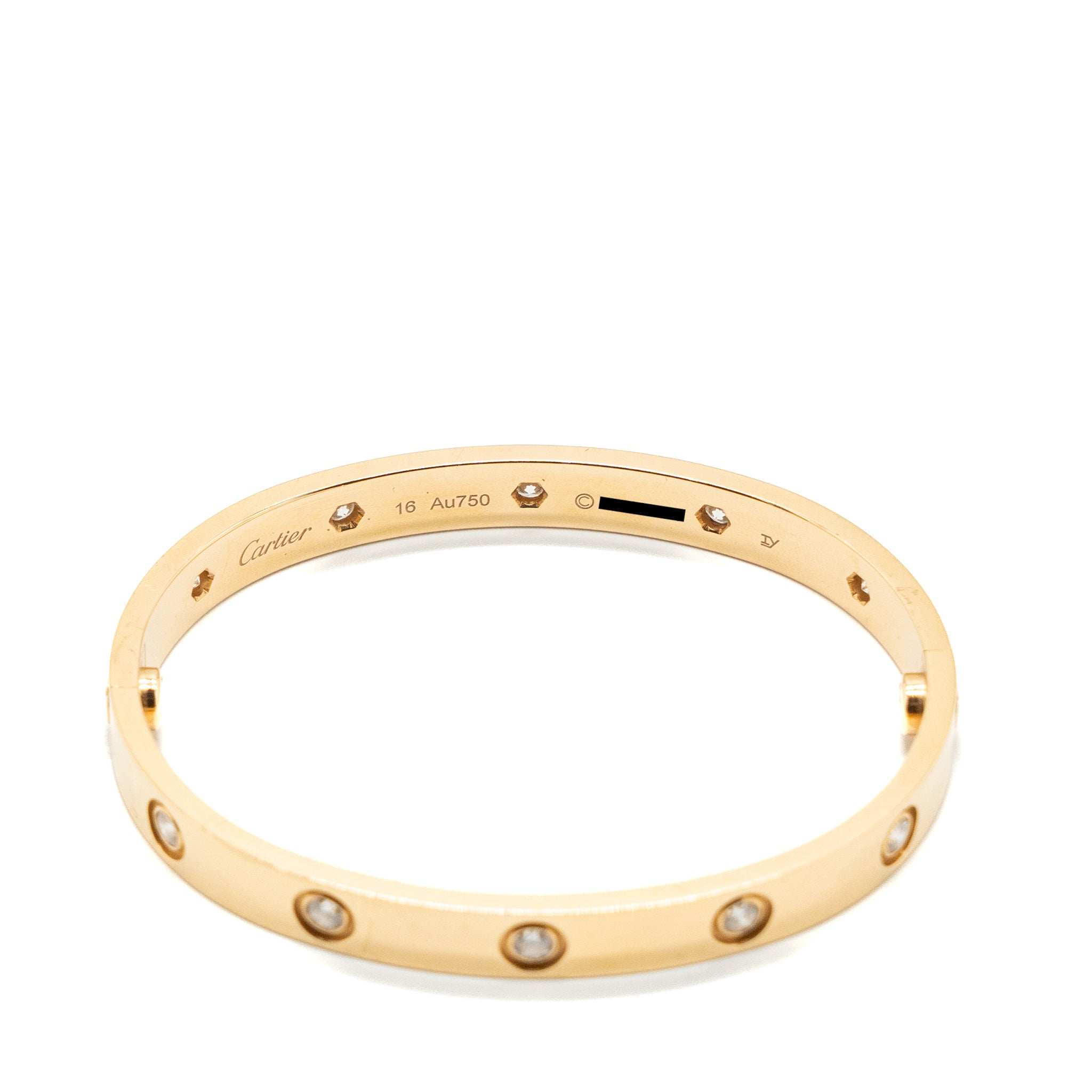 Cartier Size 16 Love Bracelet Rose Gold 10 Diamonds