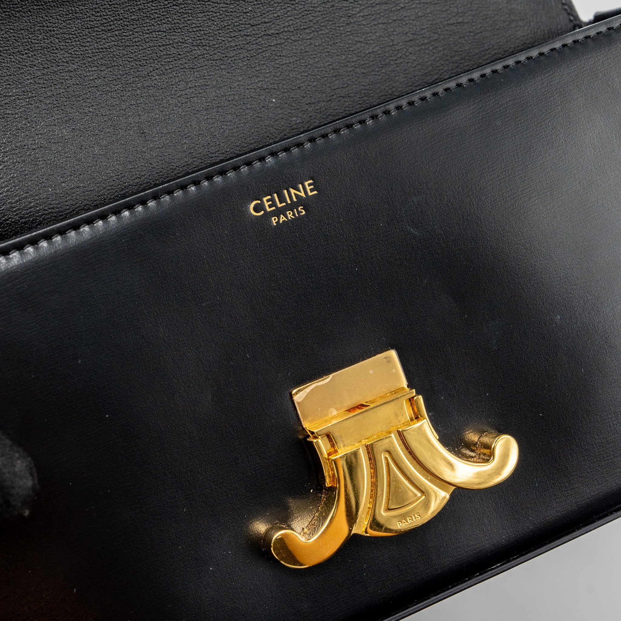 Celine Triomphe Shoulder bag shiny calfskin black GHW