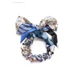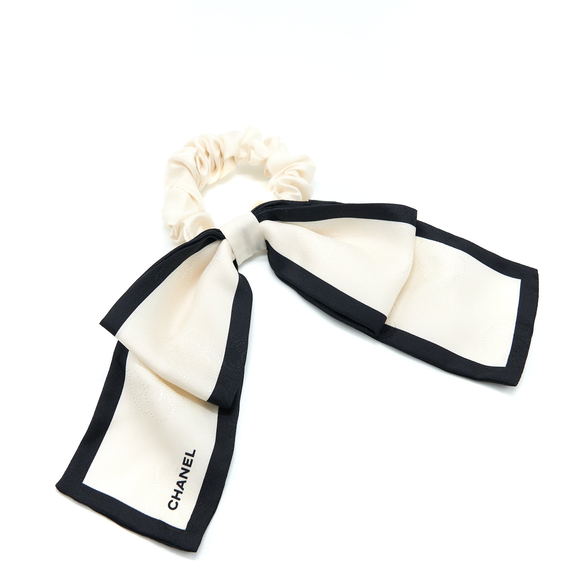 Chanel 22b Camellia/Letter Hair Tie Silk Twill Ecru/Black