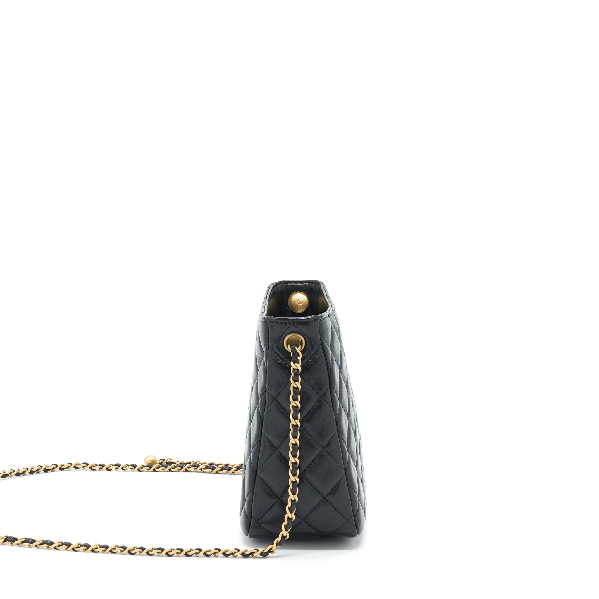 Chanel 22S Pearl Crush Hobo Bag Lambskin Black GHW