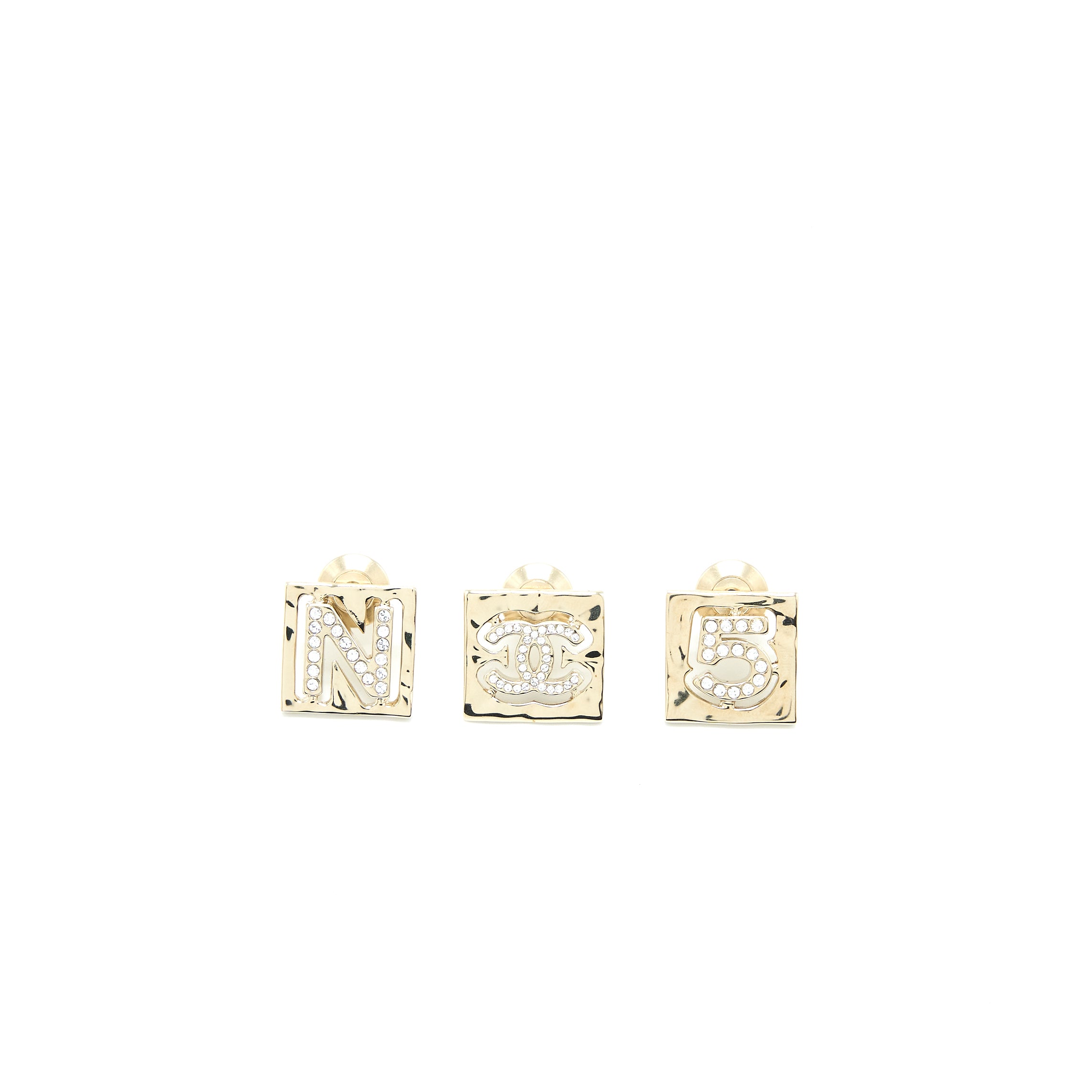 Chanel 3 Pin Square Brooch CC Logo/Letter N/5 Light Gold Tone