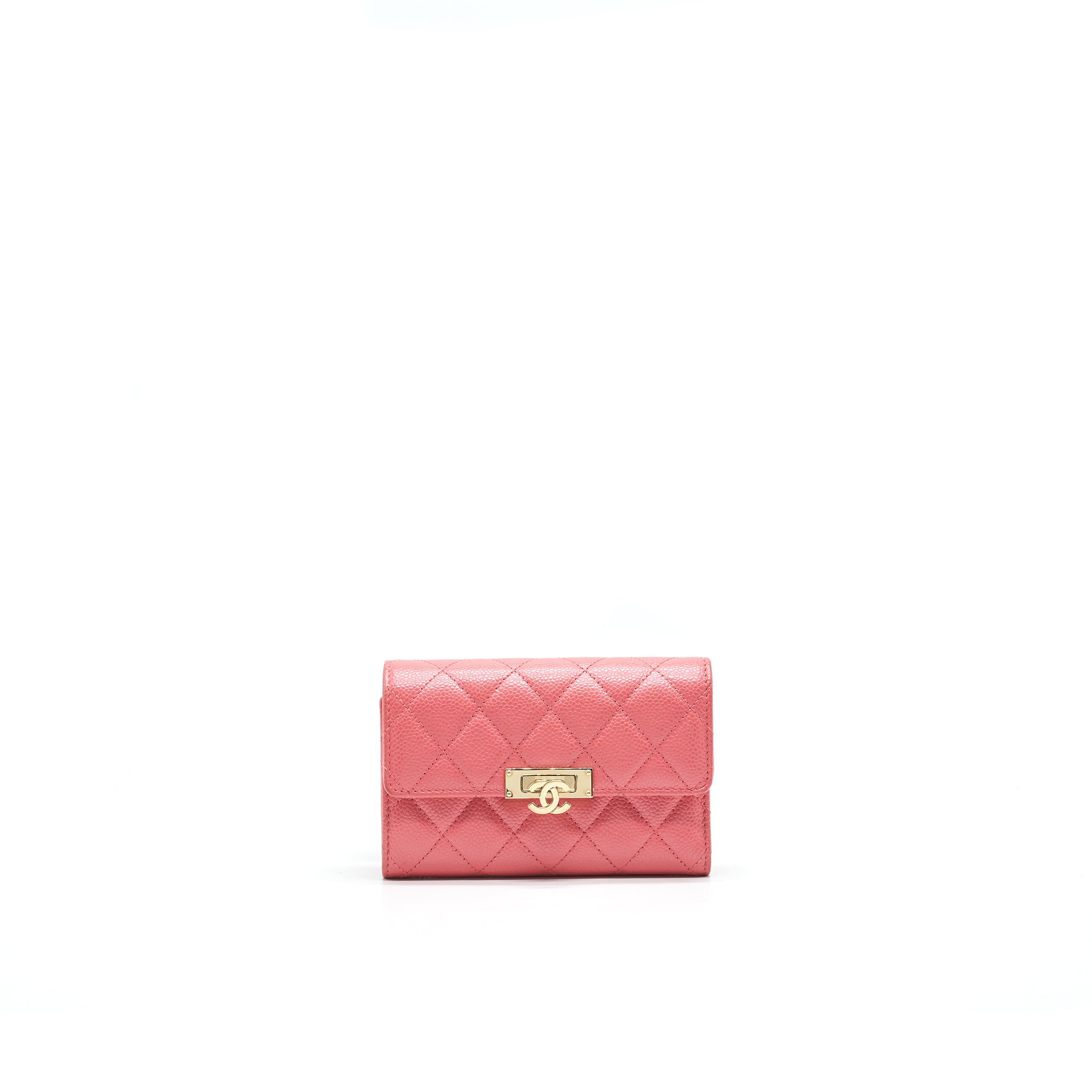 CHANEL CAVIAR FLAP WALLET ROSE PINK WITH GOLD CC LOGO